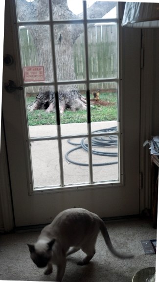 (Notice that there is a squirrel up on the branch...poor, Sundance!)