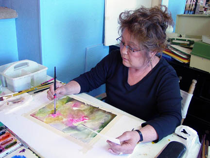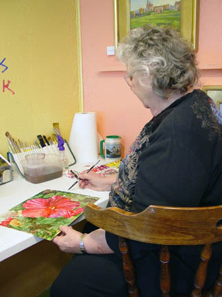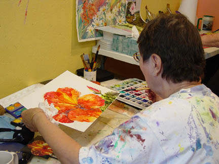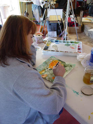 was the watercolor corner. Shirley Blevins, JK Toler and Sandi Ahart worked